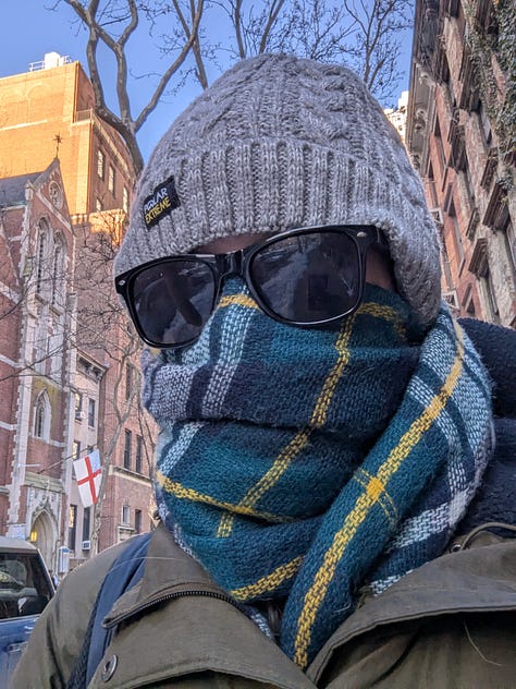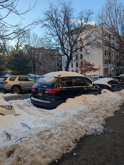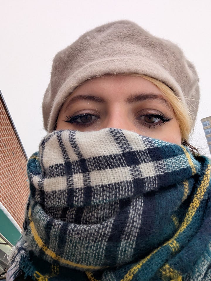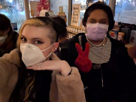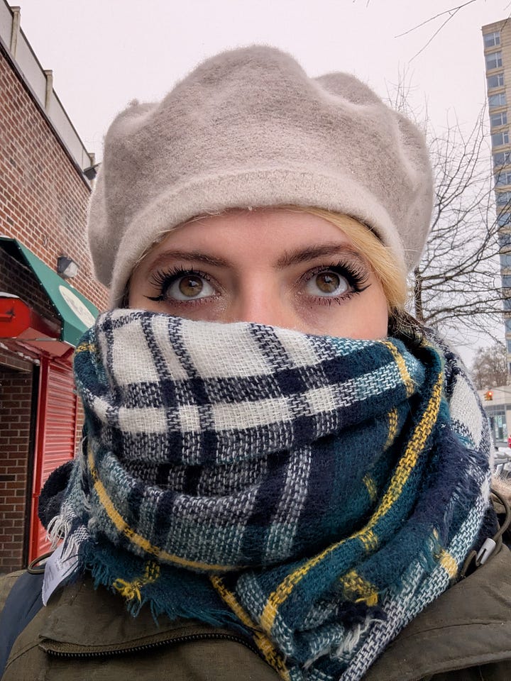 And on Sunday afternoon, I write to you, having done only one of these things. When I tell you it’s cold as the devils’ scrotum here in New York, I mean every word. It is actually colder here than it is in some parts of Canada. Alas, we only went to Kelsey’s party at Spritzenhauser 33, Greenpoint Brooklyn. We drove Cemre’s car, and there was nary a parking spot near The Bush. What was available was blocked by an 8 foot snow pile, so we turned in early lol. But! I chatted with Kelsey’s parents who were so sweet, Kelsey’s roommates, and their friend Collier, pictured below! All were a vibe and half :)