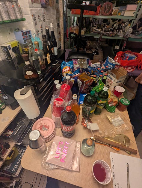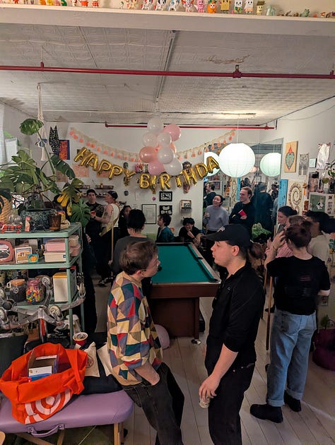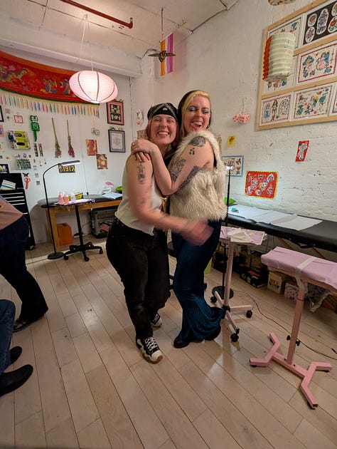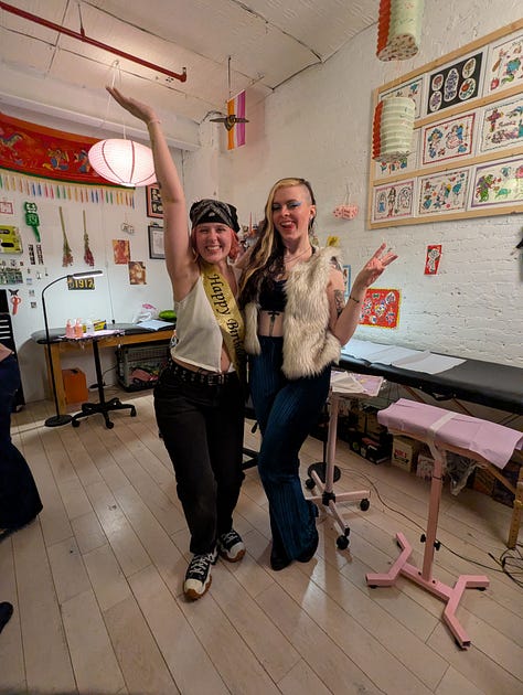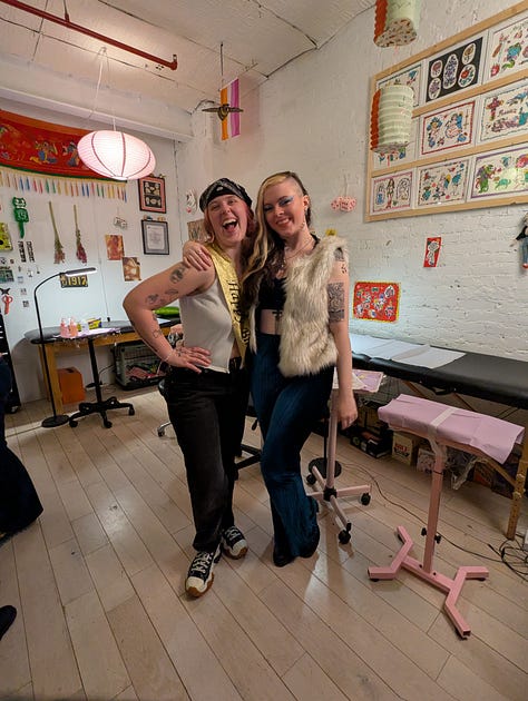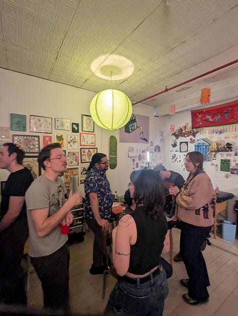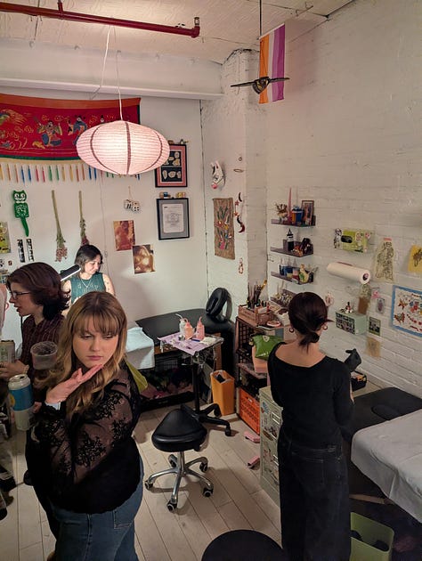 The party was a blast! Such a unique idea to throw it in a tattoo studio! They had flash tattoos available, as well as pool table. Guests brought snacks and alcohol, and I spent time oscillating between different groups of Kristen’s friends and got to know them better!