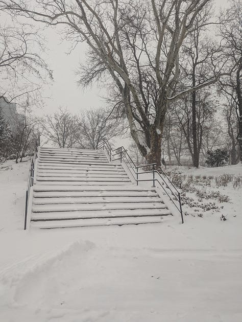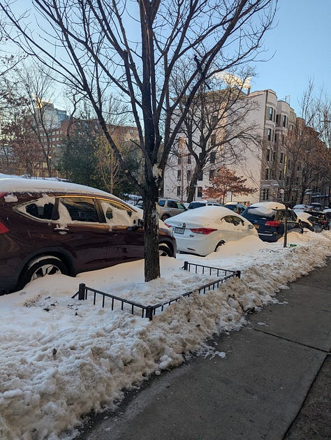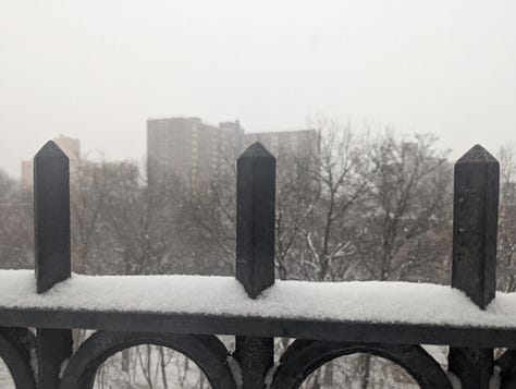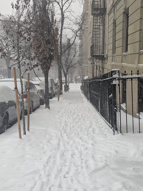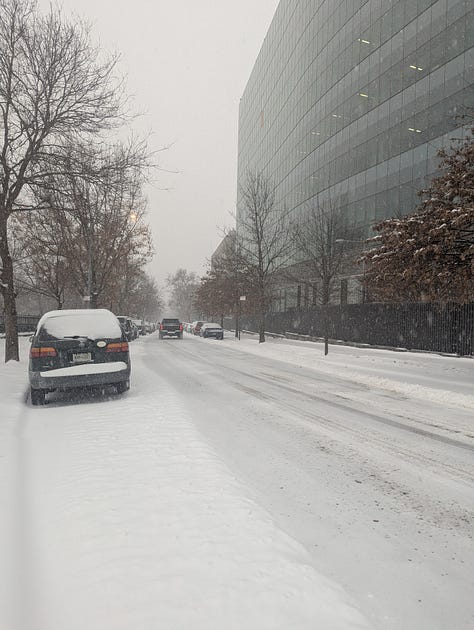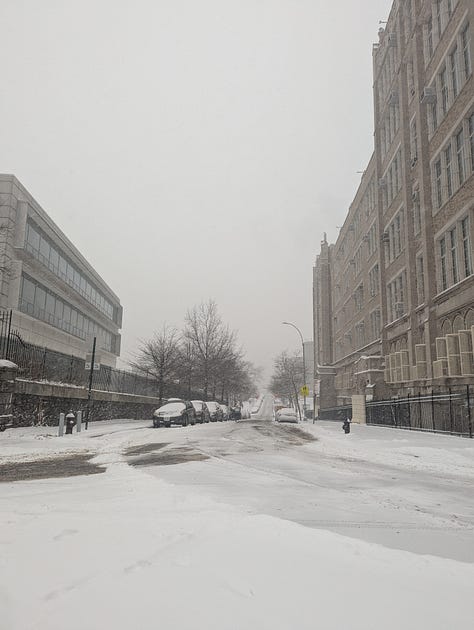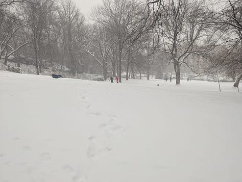 The snow started Sunday morning and just kept going. I went out for a walk that morning after it had just started, and it was magical to experience. It felt like I was in a snow globe. I went to the park near my apartment, and saw people playing badminton on the sidewalks, while kids sled down the huge hill and made snow angels. When I was young, I played in the snow quite often, and my favorite activity was to sled!