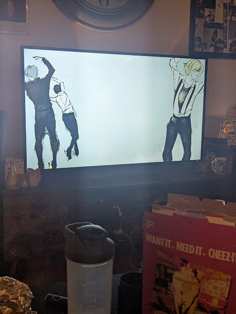 Later when we hunkered down, Tre and I binged the entirety of Yuri! on Ice. Wow. What a journey. I loved it tbh. I don’t care what the show’s creators said, that show was even more gay than Heated Rivalry…. and that was Gay with a capitol G. Victor and Yuri fully kissed. I SAW THEIR LIPS TOUCH. That is no hug between two friends! They are gay ice boyfriends!!!!