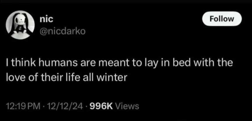 We should all be allowed to hibernate in the winter. I said what I said.