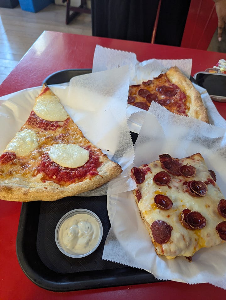 The next day was still sunny and warm, so Tre and I went to the park next door and set up camp, but not before hitting up Blick and a classic NY pizza spot :) I set up my hammock for the first time, got some reading in, and some nature observance, including a woodpecker and a beehive husk